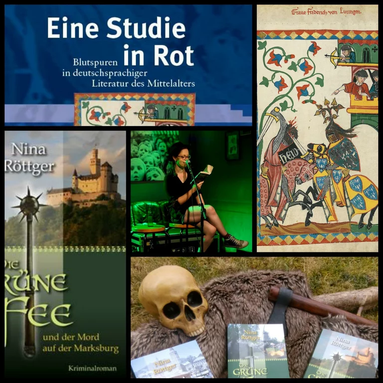 Bei Nina Röttgers Abend in der Buchhandlung Böttger sollen Blutsbande zwischen wissenschaftlicher Arbeit und kreativ-kriminalistischer Auseinandersetzung mit dem (blutigen) Mittelalter bewusst und spannend ausgeleuchtet werden. Dabei liest sie nicht nur aus ihren drei Mittelaltermarkt-Krimis, sondern gewährt auch Einblick in ihre Doktorarbeit "Eine Studie in Rot - Blutspuren in deutschsprachiger Literatur des Mittelalters".